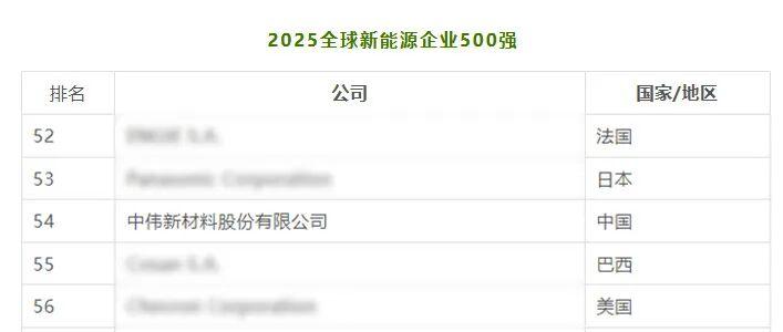 中伟股份入选2025全球新能源企业500强